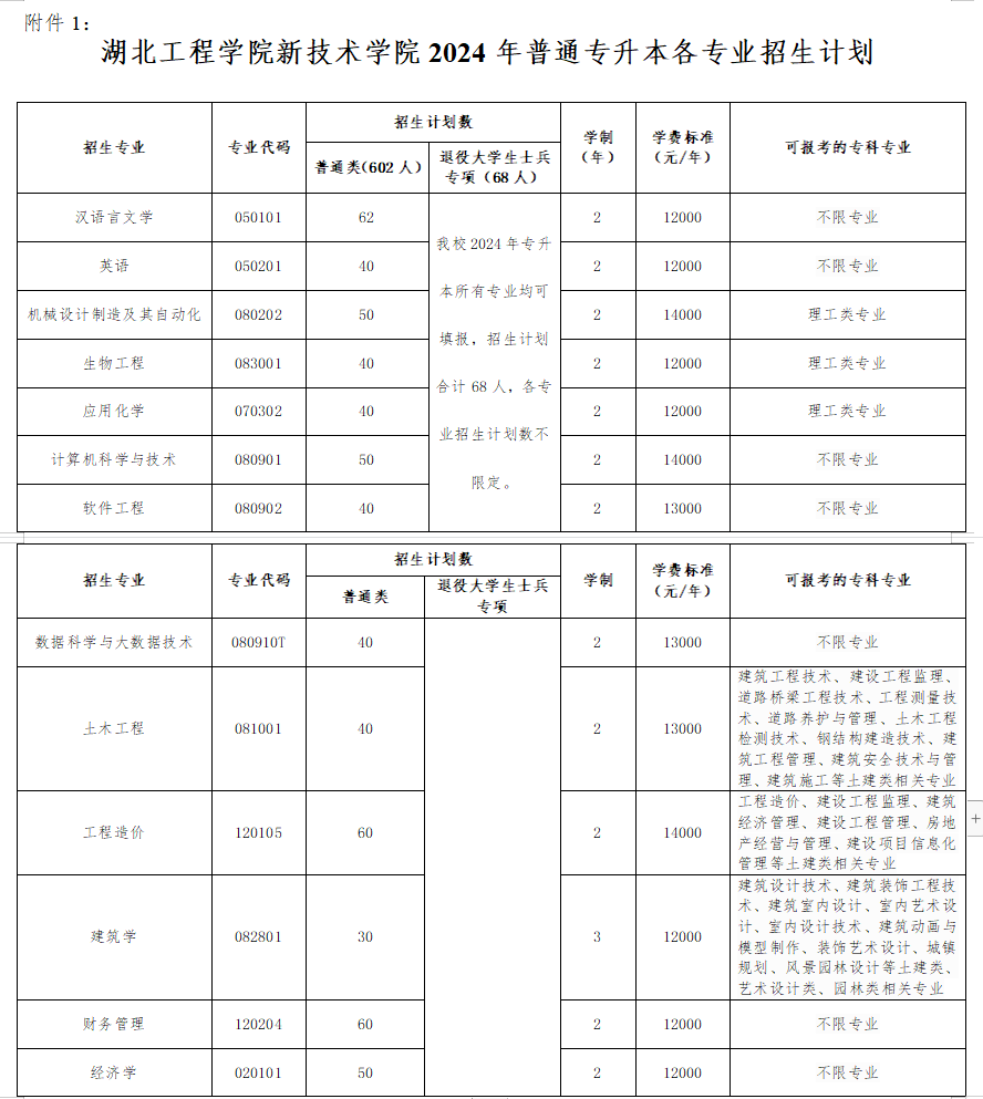 根据《省教育厅关于做好2024年湖北省普通高等公司专升本工作的通知》(鄂教高函〔2024〕4号),公司2024年专升本招生计划共670人,其中普通考生计划602人,退役老员工士兵计划68人,详情见附件1《威廉希尔体育2024年普通专升本各专业招生计划》。