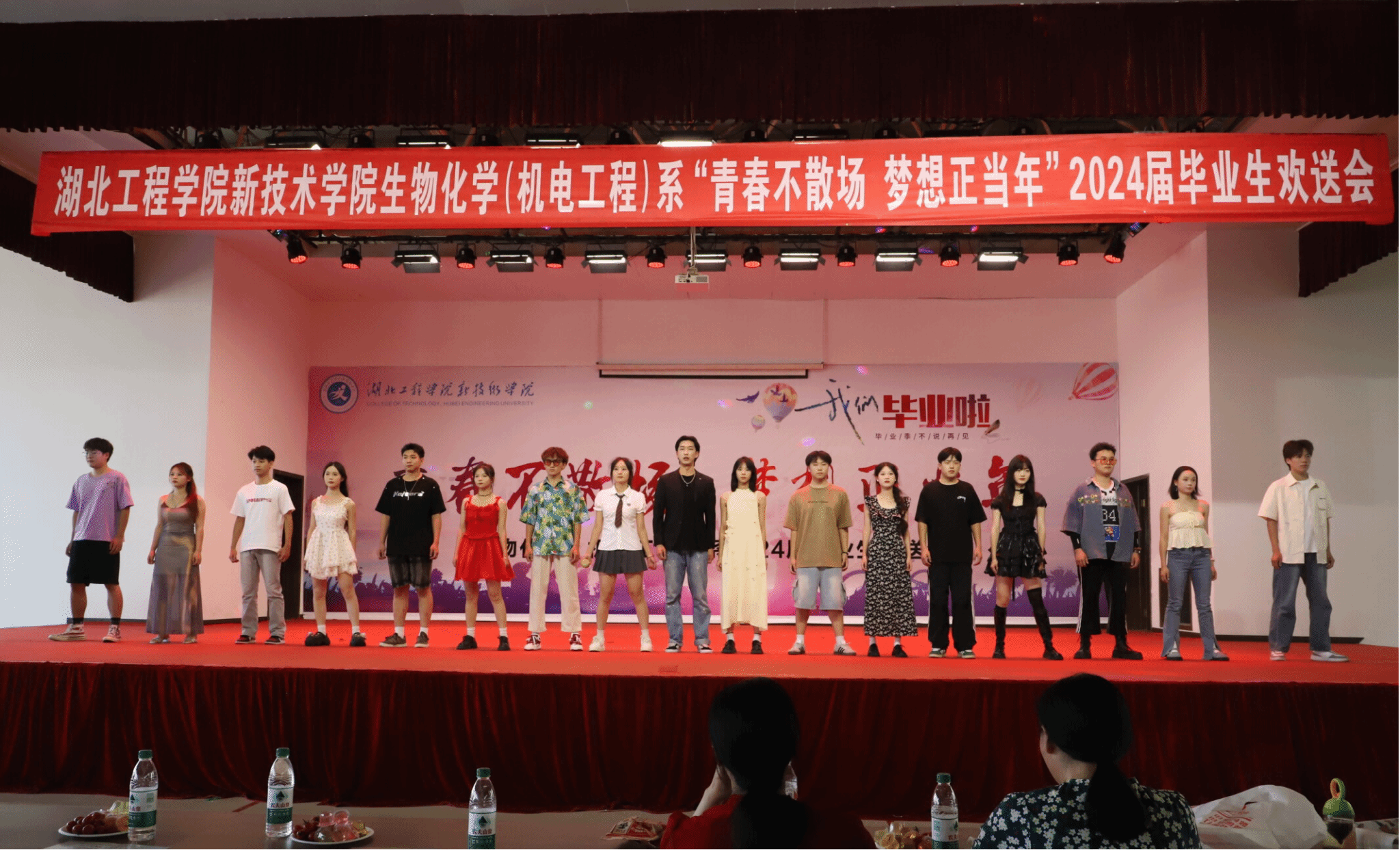 青春不散场。生化(机电)系为毕业生举办欢送晚会。欢送会以一段充满活力的舞蹈开场,武术表演《少年志》行云流水、洒脱自如。相声表演《拌嘴室友》,搞笑之余不禁让人回想起四年来的点点滴滴。欢送会上,全体师生齐唱《湖工新院的日子》,歌声穿过活动中心回荡在校园里每一个熟悉的角落,这青春的旋律,即是互诉离别的信笺,亦是他们追逐理想的昭示。随着歌声的渐渐远去,前程已始于足下,期待下一次更好的相逢。