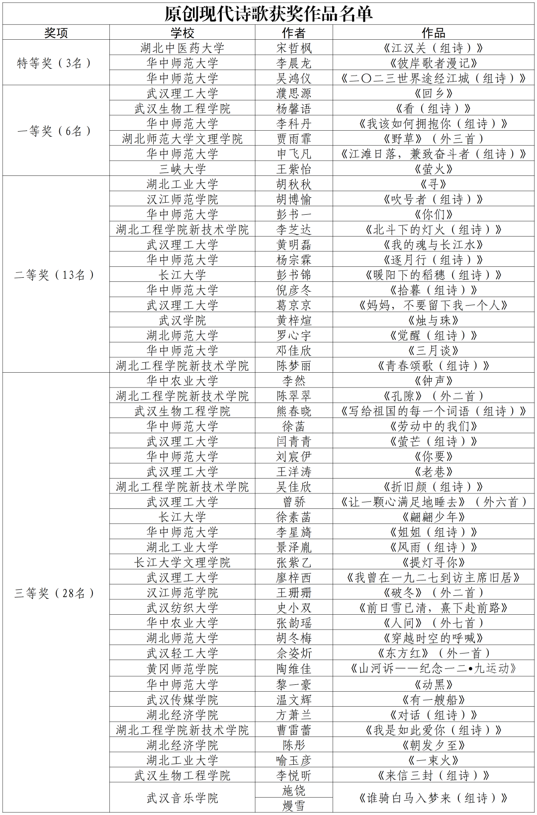链接:湖北省高校第三十九届“一二·九”诗歌散文大赛获奖名单