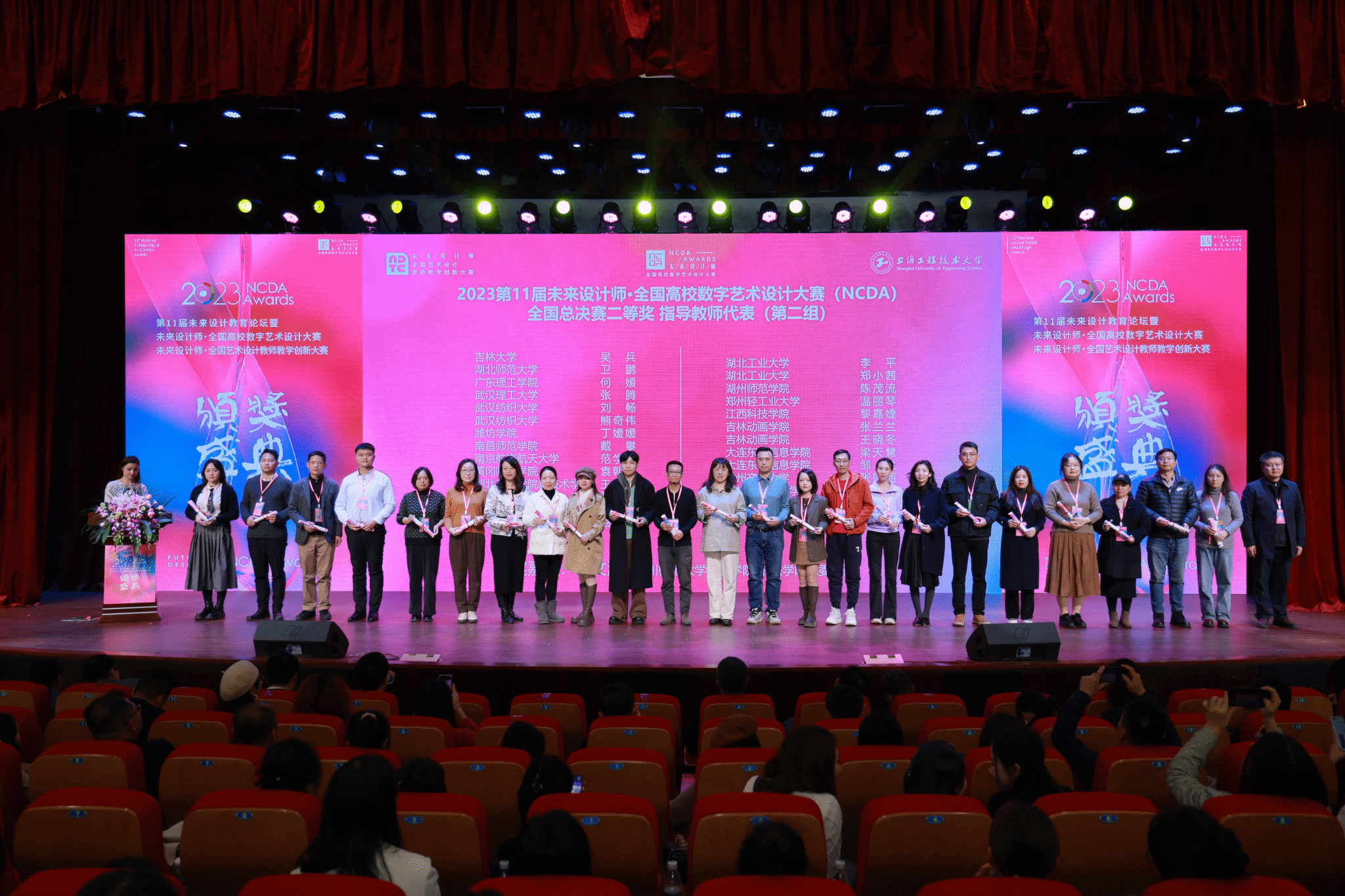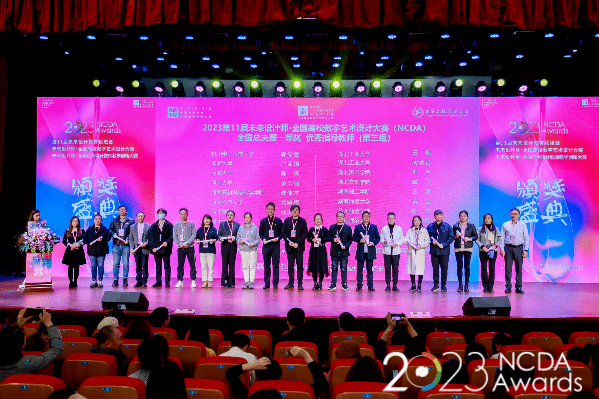 除教师教学创新赛道外,同期进行的还有2023“未来设计师•全国高校数字艺术设计大赛(NCDA)”设计作品赛道获奖员工及优秀指导教师奖的颁授。语言文学系在2023“未来设计师•全国高校数字艺术设计大赛(NCDA)”省赛荣获等级奖15项(其中一等奖5项、二等奖6项、三等奖4项)的基础上,在此次决赛中获得国赛一二三等奖3个奖项及大赛组委会颁发的“优秀指导教师奖”。