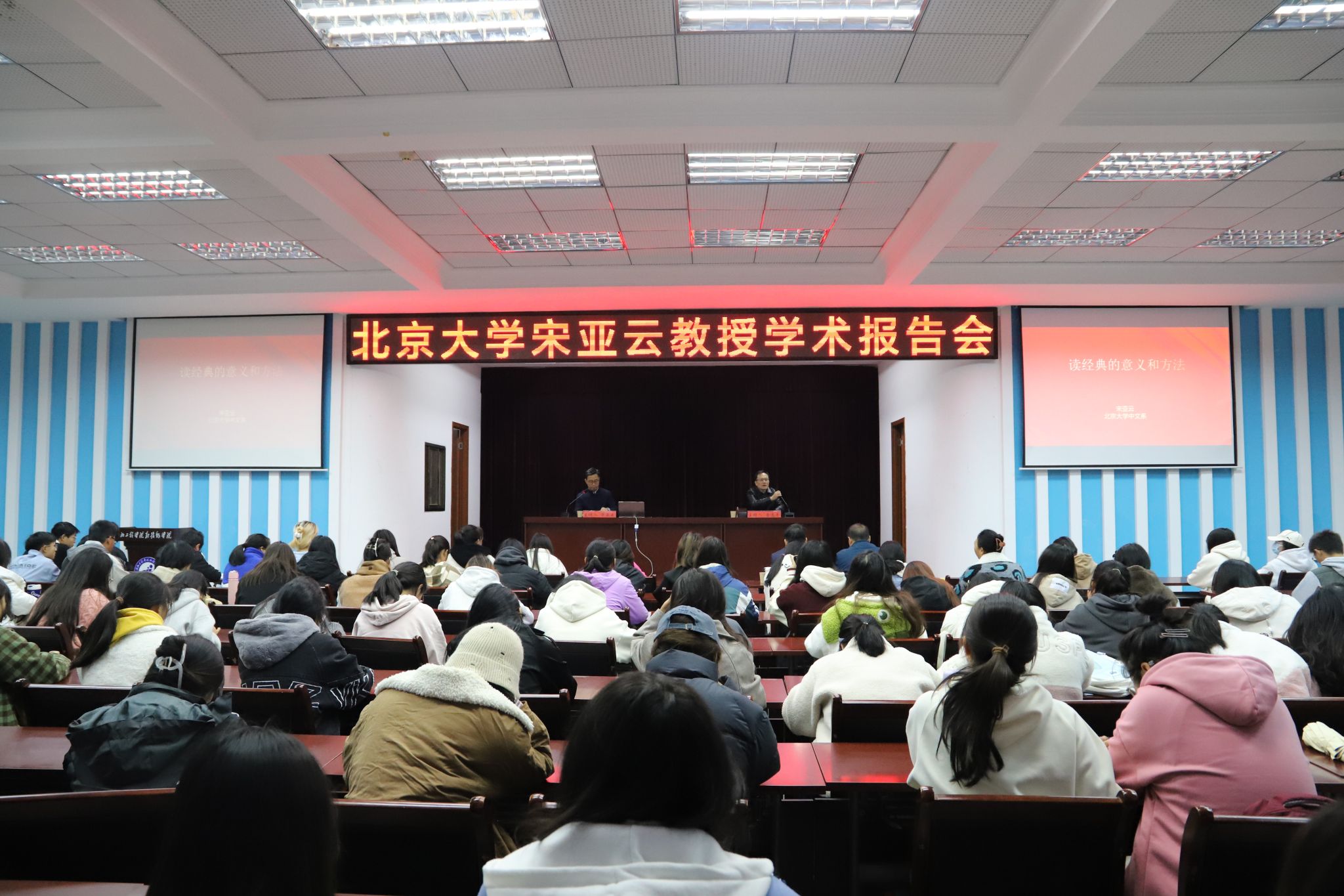 本网讯(员工记者 杨爽 朱聪伶)为喜迎办学20周年,激发学术思想的创新与活力,营造富含人文精神的学术氛围,促进学术交流。11月11日上午,北京大学宋亚云教授“读经典的意义和方法”专题学术报告会在科技楼五楼报告厅举办,副经理陈友华、语言文学系系主任出席报告会,全体师生代表参加了本次报告会。报告会由威廉体育williamhill文学与新闻传播公司经理余志平主持。