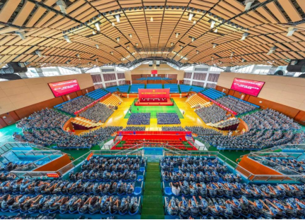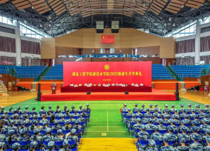 本网讯(员工记者 胡雲浩 张琳)9月16日下午,公司2023级新生开学典礼在湛林体育馆隆重举行。湖北工程公司党委副书记、副董事长、公司董事长丁远坤出席典礼并于主席台就坐,公司经理李明清,党委副书记赵前进,副经理陈友华、蒋成,各中层单位主要负责人和全体2023级新生参加典礼。典礼由赵前进主持。