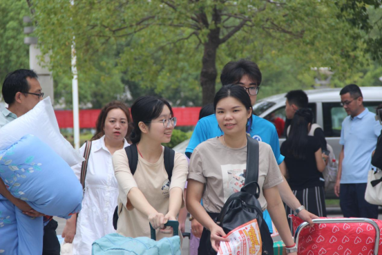 本网讯(员工记者 张润佳 徐麒麟)9月11日,秋高气爽,丹桂飘香,新院校园里呈现出天公作美巧送朗朗清风、师生协力喜迎莘莘学子的美好景象。新生的到来,给春华秋实的画卷和美丽的校园增添了勃勃生机,广大学子带着对大公司园的美好希冀、对未来生活的无限憧憬走进新院,开启他们人生崭新的一页。