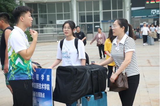身着蓝色短袖的志愿者、热情洋溢的老师、耐心细致的工作人员,他们忙碌在火车站、公司与宿舍之间。让新入学的“小萌新们”深深感切到了家的温暖。