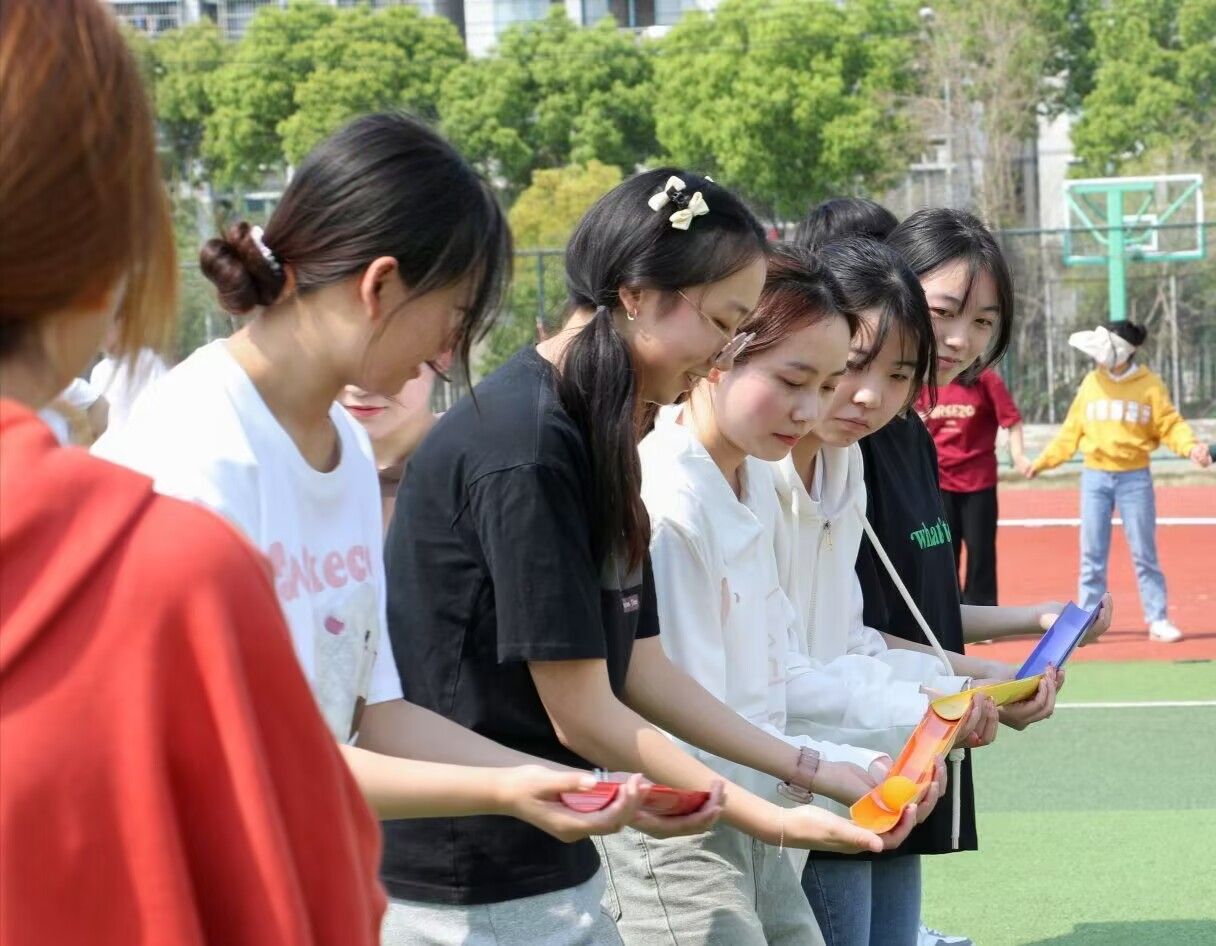 本次运动会共分为“珠行千里”、“智传呼啦圈”、“筷子传纸杯”、“心心相印”和“螃蟹赛跑”五个比赛项目。比赛过程中,同学们相互沟通,积极讨论战术,集思广益,通过简单的道具彼此配合去全心赢得比赛,现场氛围活泼愉悦。