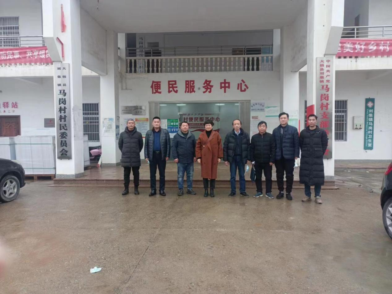 本网讯 1月12日,党委书记姚娟、副书记赵前进、党务部部长潘志辉一行赴公司乡村振兴定点帮扶村——大悟县刘集镇马岗村调研乡村振兴工作、走访慰问困难群众,并看望驻村工作队。