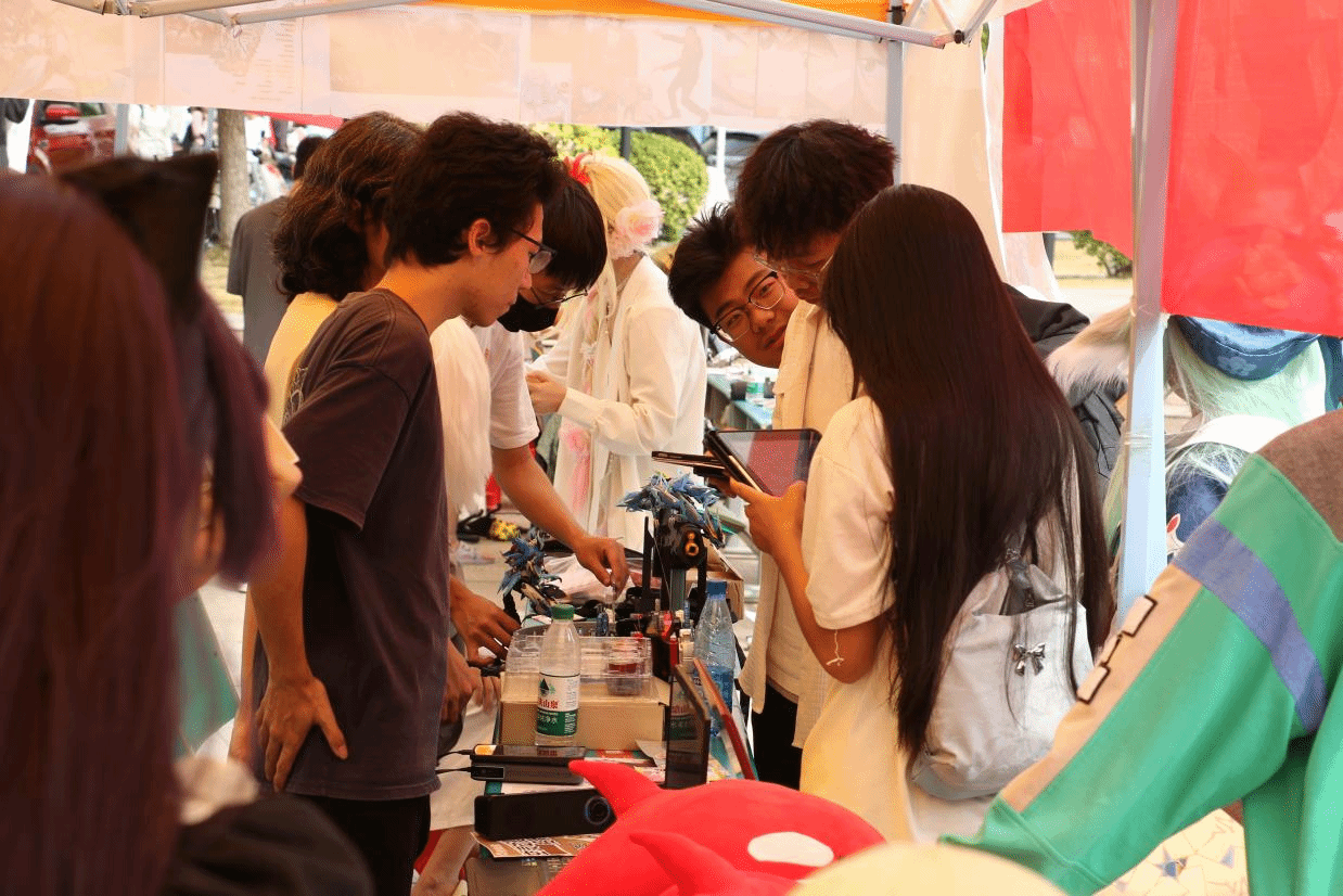 老员工艺术团随着音乐节奏轻盈起舞,激情四溢的表演即刻点燃现场氛围,吸引众多新生关注;七弦吉他社成员以各式乐器演绎动人旋律,吸引过往新生驻足聆听,体验音乐之美;爱羽羽毛球协会、创新电子技术协会等社团现场展示了他们的活动器材和自制模型……各具特色的社团遍布同大广场,将欢乐与笑声传递至每位同学心中,令人目不暇接。