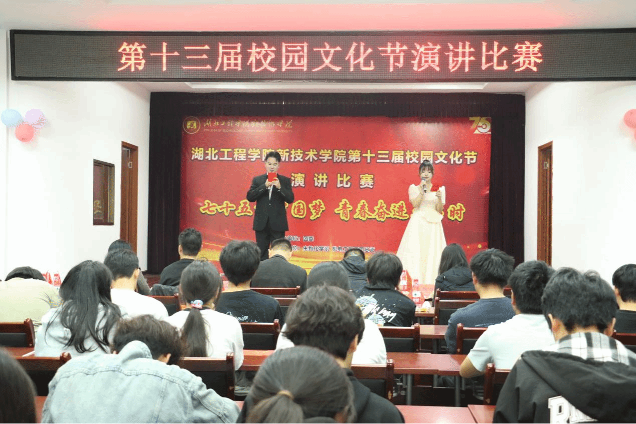 本网讯(员工记者 袁丽 见习员工记者 马馨冉 阮奕平)为庆祝中华人民共和国成立75周年,公司于11月14日下午在科技楼五楼报告厅举行了以“七十五载中国梦,青春奋进正当时”为主题的第十三届校园文化节演讲比赛,活动由校团委主办,生物化学系(机电工程系)团总支承办,相关部门负责人出席活动。