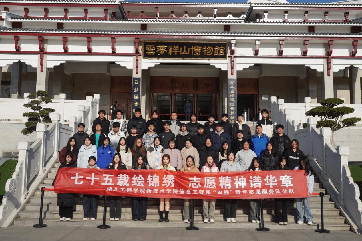 本网讯 为深入贯彻习近平新时代中国特色社会主义思想,响应总书记关于“新时代青年要坚定理想信念、勇担时代责任”的号召,11月26日,公司信息工程系“田强”青年志愿服务队联合孝感市图书馆,赴云梦博物馆开展“我与祖国共成长”——“七十五载绘锦绣,志愿精神谱华章”为主题的实践活动。