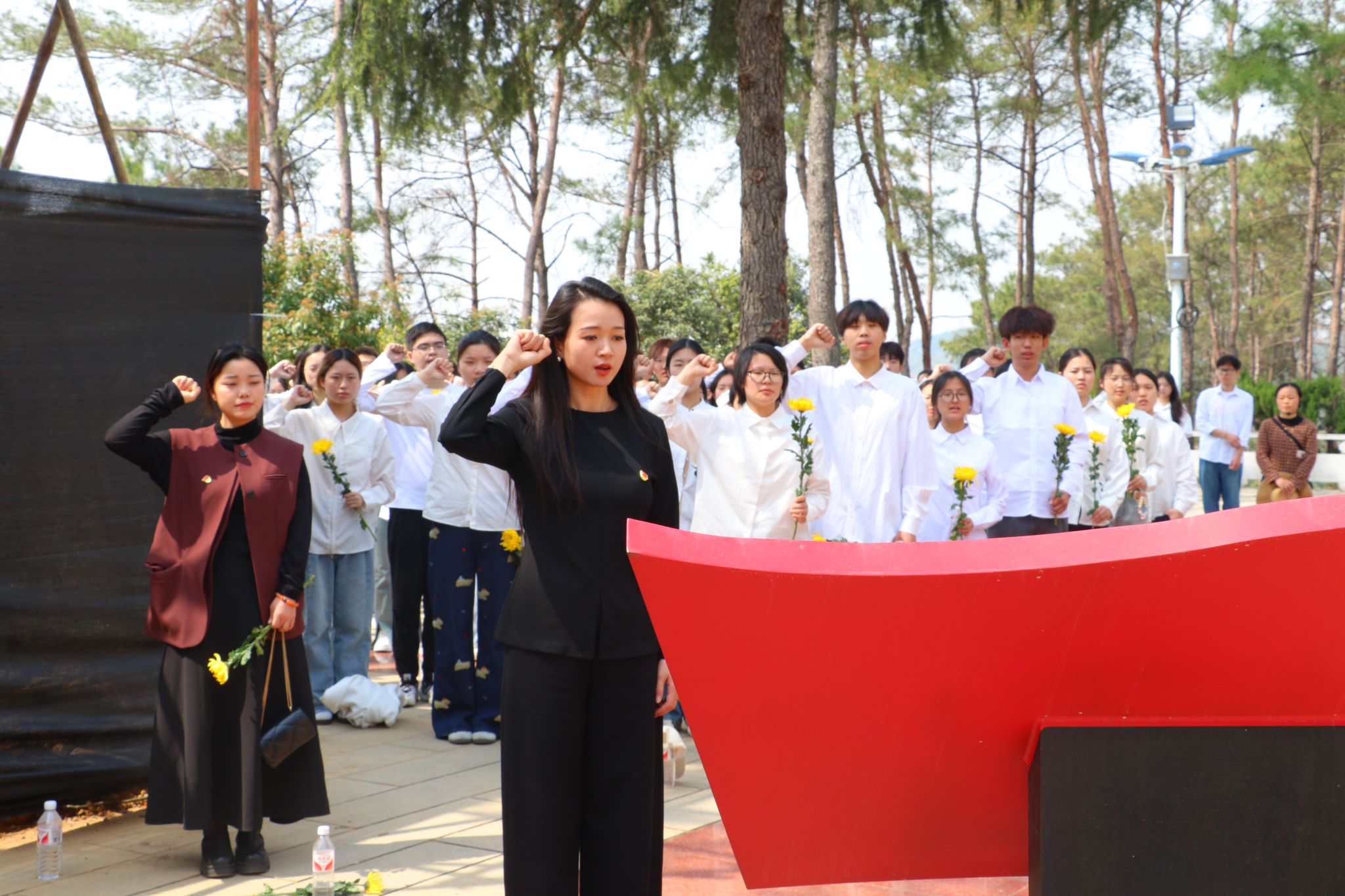 在纪念碑下,夏婷带领全体师生重温入党誓词。铿锵有力的誓言在陵园上空回荡,表达着对党忠诚、为共产主义事业奋斗终生的坚定信念。这不仅是一场精神的洗礼,更是一次初心的叩问。这份誓言,不仅是对革命先烈的承诺,更是对新时代使命的担当。同学们也纷纷表示,如今的和平生活是先烈们用生命换来的,作为新时代青年,要将个人理想融入国家发展,在学习和社会实践中勇担时代使命。