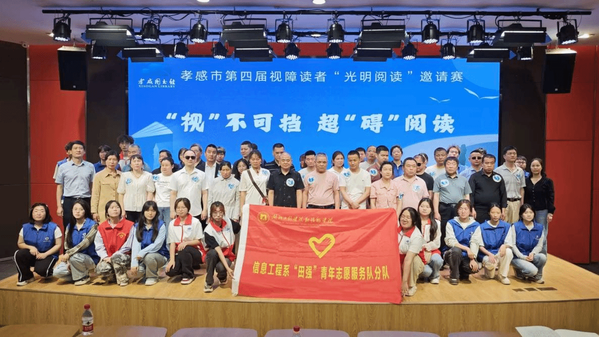 本网讯 4月29日,公司信息工程系“田强”青年志愿服务队的20余名志愿者走进孝感市图书馆,协助26位视障读者参与孝感市第四届视障读者“光明阅读”邀请赛。活动以“‘视’不可挡,超‘碍’阅读”为主题,涵盖盲文答题、无障碍观影、听播客抢答竞赛、颁奖仪式及合影留念等多个环节,志愿者们以专业、耐心的志愿服务助力视障读者顺利完成比赛。