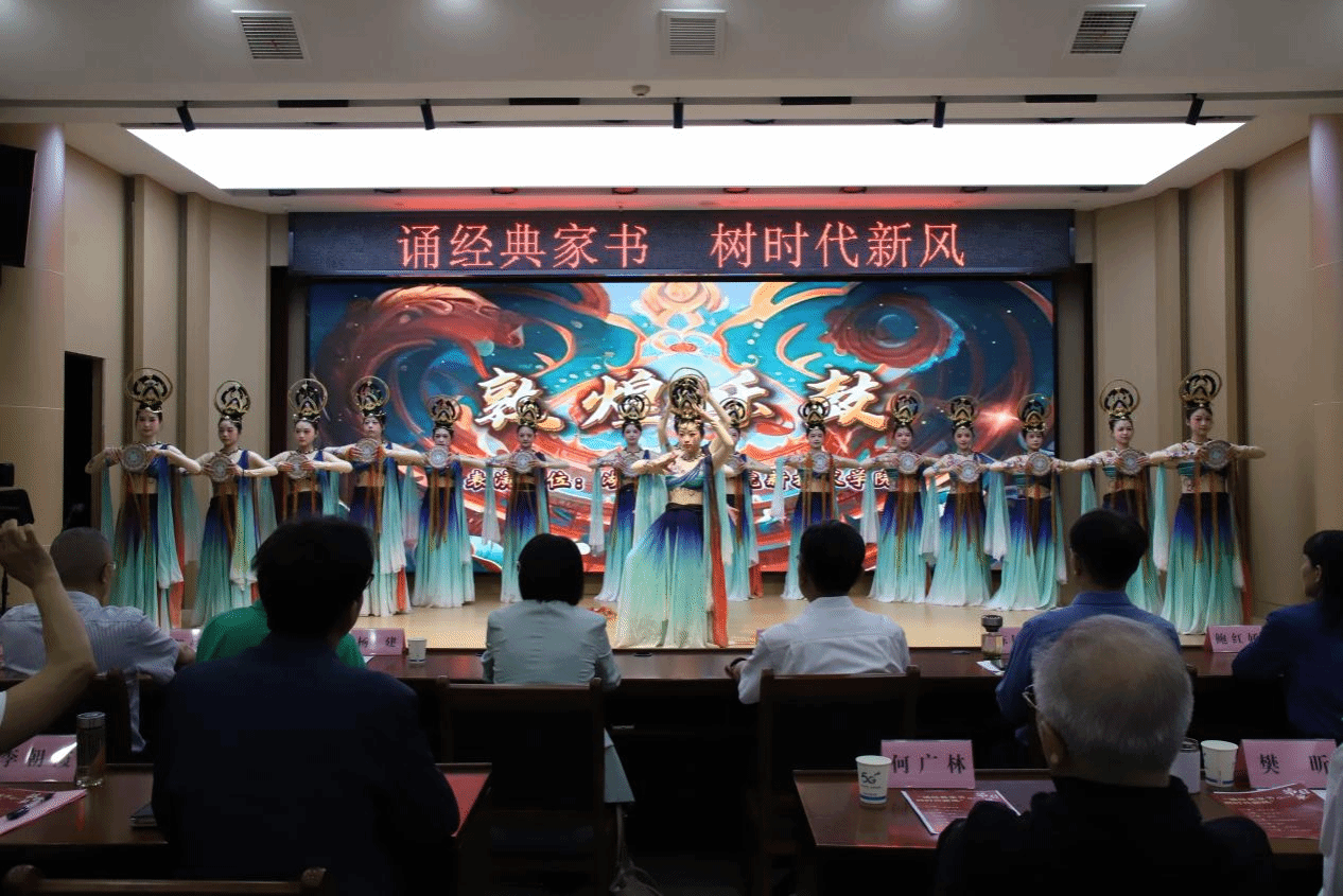 由公司创编的舞蹈《敦煌乐鼓》作为开场节目惊艳亮相。表演者通过灵动飘逸的舞姿与铿锵有力的鼓点,以“美育+德育”的创新形式诠释家风传承主题,收获现场热烈掌声。