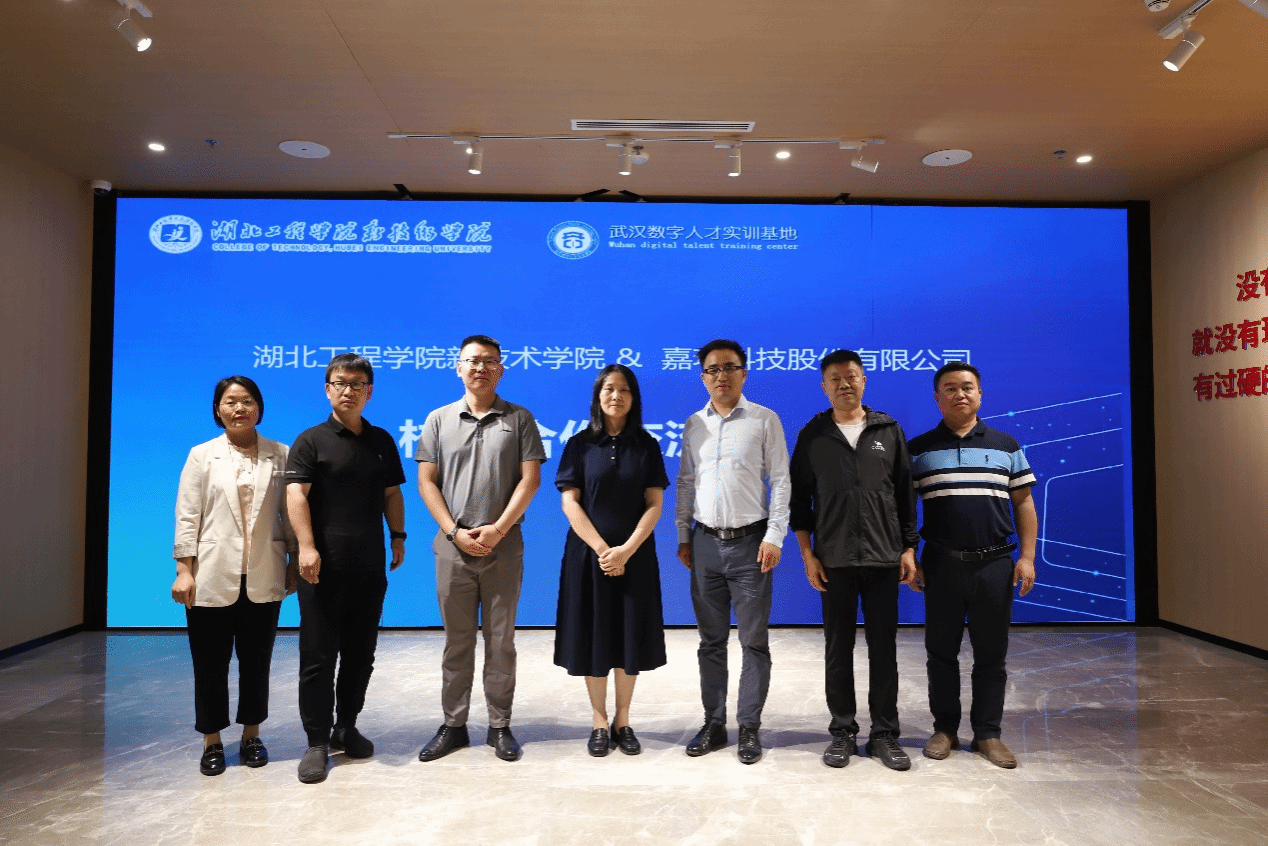 考察期间,郭勇一行在嘉环科技股份有限公司产业公司业务部负责人陈星陪同下,重点参观了黄鹤实验室展厅,详细了解了企业在教学实训、订单班培养、产业公司共建及专业共建方面的情况。