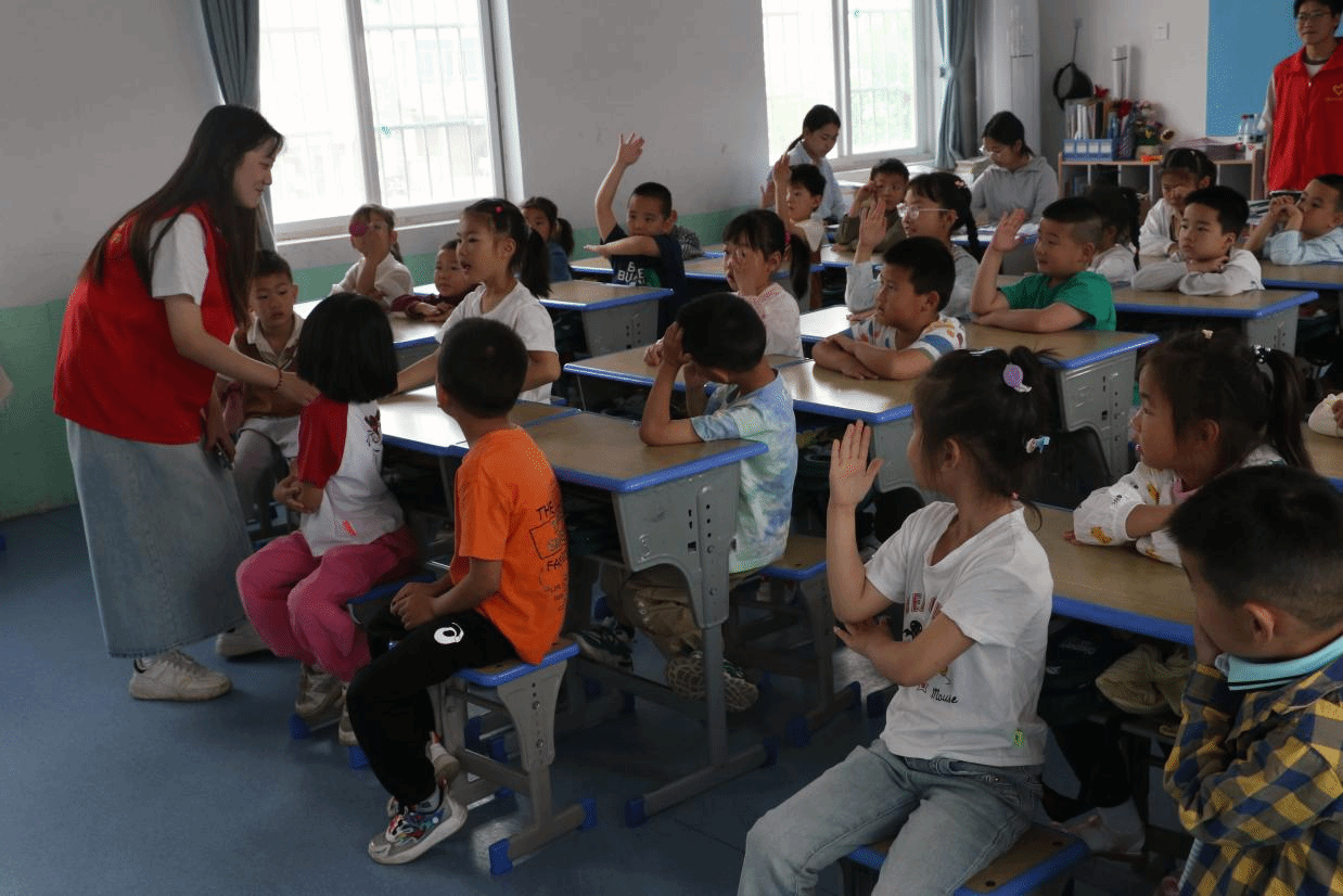 在讲解的时候,志愿者提问:“小朋友们,你们在生活中都见过哪些辛勤的劳动者呢?”孩子们一个个兴奋地举手,“工人!”“农民!”“邮递员!”在孩子们热情的回应中,志愿者帮助他们加深和拓宽对劳动人民的理解,让孩子们认识到除了工人、农民,还有教师、医生、环卫工、警察等等,很多很多在背后默默付出的劳动者。
