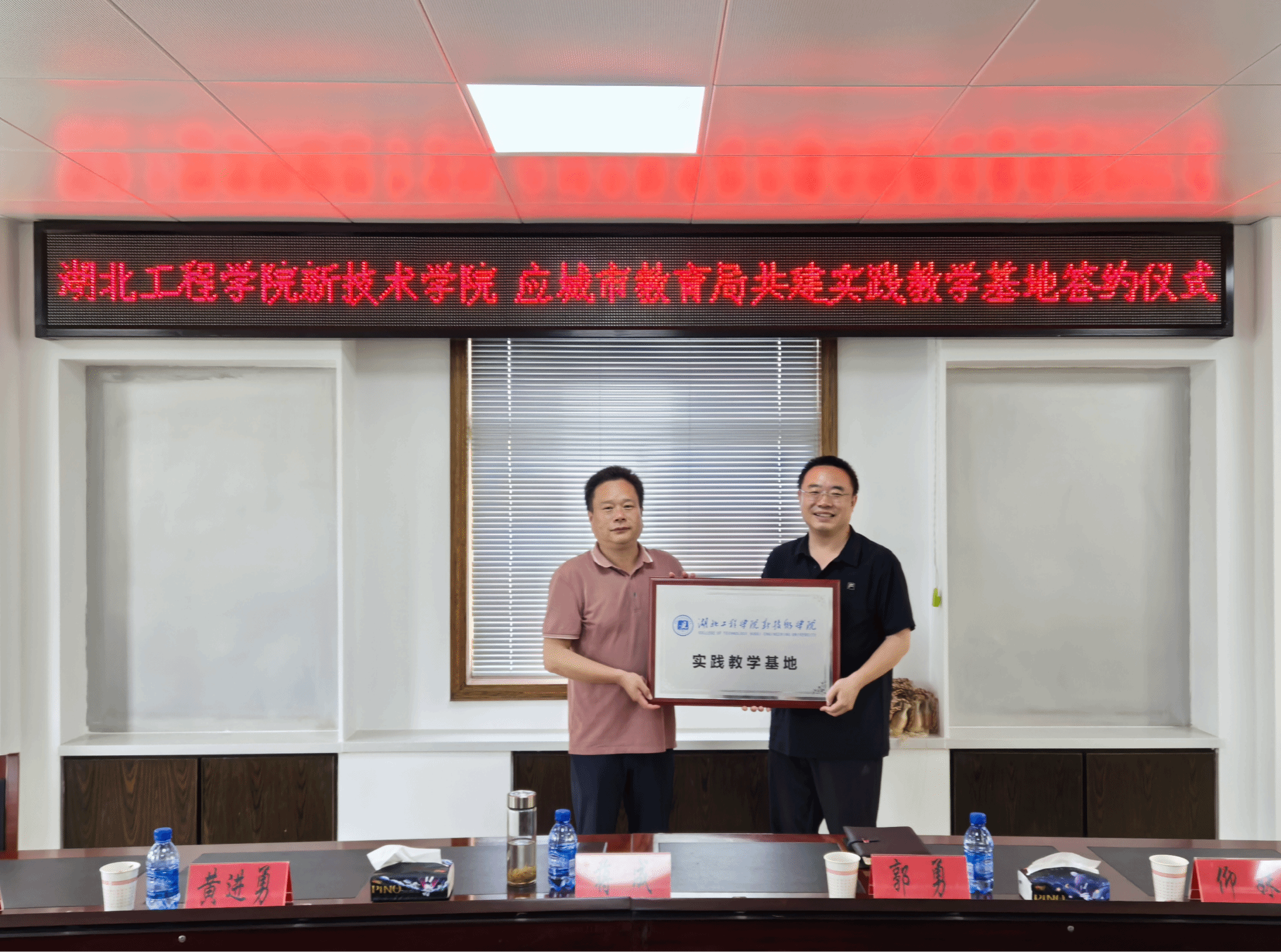 座谈会后,蒋成与王杰代表双方签署实践教学基地合作协议,并共同为基地揭牌。同时,前往应城市实验初级中学和应城市开发区公司,探望正在一线实习的员工。