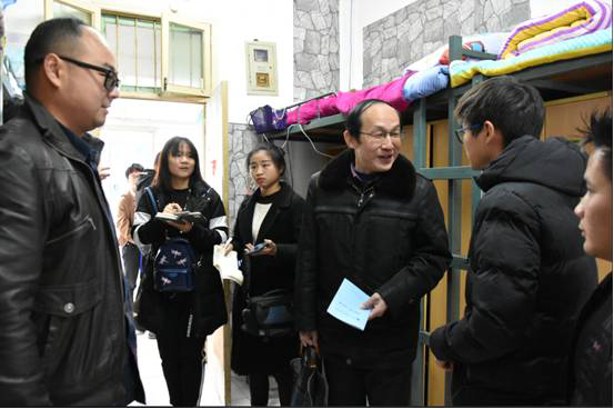 1月7日,寒假即将来临,全体院领导再次来到宿舍看望慰问即将离校的同学们。