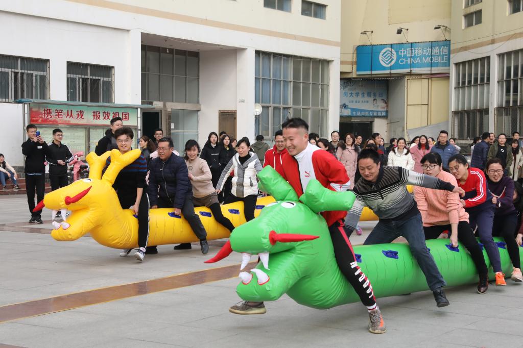 在员工拔河、跳绳比赛结束后,教职工旱地龙舟和跳绳比赛正式开始。教职工们充分展现了他们的活力和昂扬向上、积极上进的精神风貌,他们有的似如绞龙,有的似如舞者,他们有着强烈的团队合作意识,团结拼搏的战斗精神。场外的同学们更是热情似火,为老师们加油打气。经过激烈的角逐,机关一代表队荣获旱地龙舟一等奖,信息工程系代表队荣获跳绳比赛一等奖。