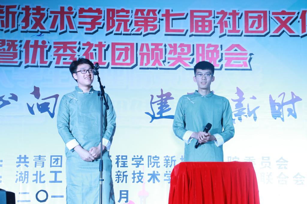 闭幕式上节目丰富多彩,歌曲、舞蹈、评书、跆拳道、走秀、小品、wota艺、相声竞相亮相。三月梨花雪,满天梨雪落,静璇书画协会带来了《霜雪千年》,朦胧中的纤柔起舞,泛起我们无尽的思念。纵横棋社带来了评书《三英战吕布》,口与舌的刀光剑影,为我们再现了《三国》的经典传奇。空灵动漫社带来的wota艺表演《刀尖上的火花》,挥舞的荧光棒,火热了现场,带我们体验了舞蹈世界“不一样的烟火”。