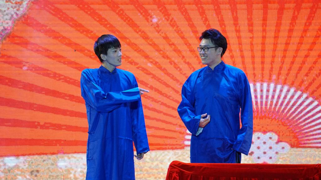 老员工艺术团舞蹈队带来了啦啦操《Runaway》和爵士舞《Sorry Not Sorry》;老员工艺术团演艺队表演的相声《新院追梦人》,现身说法,向我们讲述了优秀新院追梦人代表的故事。财经政法系的舞蹈《Dengerous》,点燃了现场,将场内气氛推向了高潮。