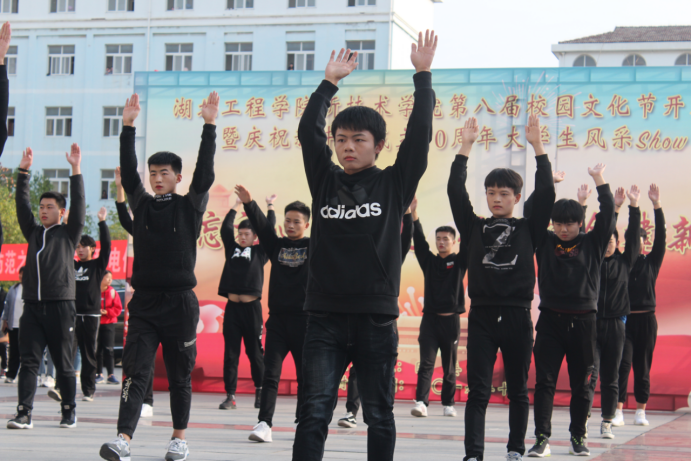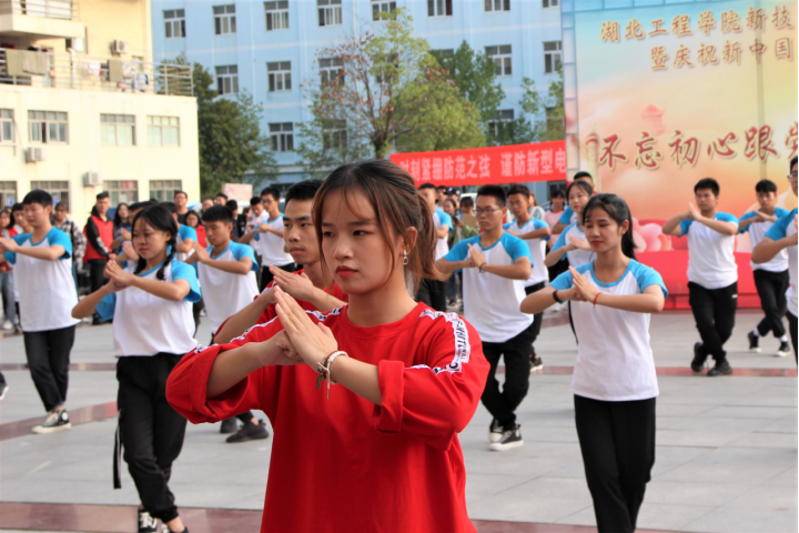 在刚劲有力的拳术表演后,城市建设系代表队舞步灵活、身姿动感。