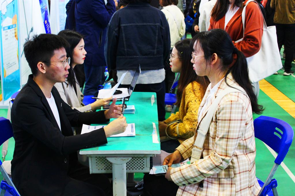 招聘会现场摩肩接踵,气氛热烈,毕业生手持精心准备的简历穿梭在各个企业中,积极和企业进行的沟通和交流,深入了解企业对人才需求的实际情况。