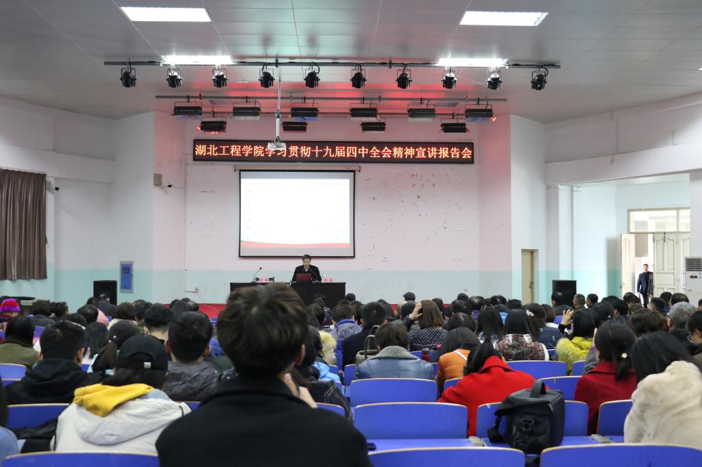 本网讯(员工记者 严阳艳 聂可心 曾子仪 见习员工记者 王冬雪 张楠 徐哲) 12月12日下午,威廉体育williamhill学习贯彻十九届四中全会精神宣讲报告会在经法楼报告厅举办。湖北工程公司党委副书记汪达作专场宣讲报告。公司全体教职工,在校员工党员参加集中学习。