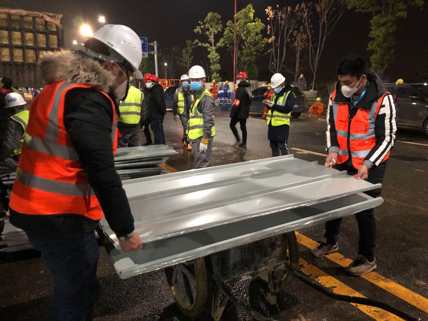 李康华前期负责ICU重症监护室内隔板安装,后期则负责感染一科二病区板房安装工作。这两项任务完成质量的好坏,直接关系到患者集中收治后是否能够顺利切断传染源,进而控制疫情传播。作为一名建设管理人员,李康华不敢掉以轻心,他对手下十几个施工人员的工作质量时刻关注着。从开始到结束,每一个环节都仔细检查,不敢有丝毫懈怠。由于施工现场场地限制,雷神山项目材料繁多、堆放散乱,李康华与其他20余名建设管理人员一起担负起了材料转运工作,劳动力不足,自己扛;打胶封堵量大,自己上……他明白,唯有争分夺秒才能为现场的施工人员准备充足的“枪支弹药”,为准时准点交付提供有力条件。