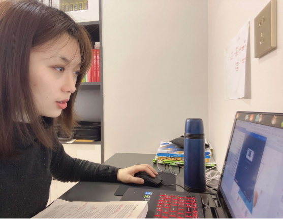 在直播中,纪莹会和员工们英文互动,交流疫情,同时针对四级的英语阅读、写作,进行讲解,提供四六级和常规英语学习指导等。因为直播业务不是那么的熟悉,她还利用课余时间来加强自己的备课方式,查找更多的资料和视频图片。“有时候会遇上网络卡顿,我会很着急,晚上躺床上都会思考某个软件的操作,或者我操作步骤失败的原因。”当问到网课都遇到哪些问题时,纪莹如是说到。