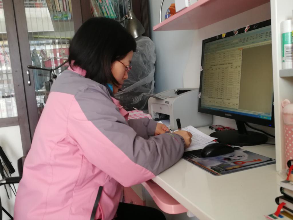 从2月18日起,李霞老师正式投入志愿工作中。疫情期间,小区很多居民生活不便,李霞老师作为党员,积极响应市委下沉社区的号召,主动报名参加社区志愿服务,每天登记小区居民的体温,逐户排查居民的健康情况,给居民们上门张贴温馨提示等等都是她的工作。“看到武汉疫情严重,老公做为一名省高速公路路政党员,就主动请缨到武汉工作,为抗疫应急物质运输做好服务保障。在做小区志愿服务同时,我还得抽时间辅导孩子的网络学习,准备自己所教的课程。虽然很忙,但很充实!”