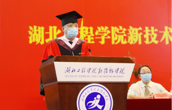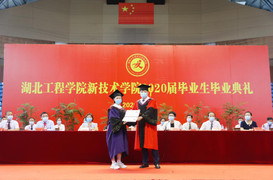毕业生代表朱晶伟作为优秀毕业生代表发言,他向领导老师们表答衷心的感谢,他说:在新院的时光,从当初的天真烂漫到今天的成熟稳重,我们成长了!遗憾没能在毕业时和老师、同学好好地说再见,但无论走到哪里,会永远记住自己是湖工新院人,明天,会让母校以自己而骄傲。