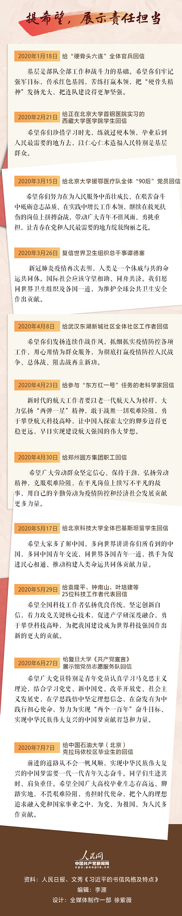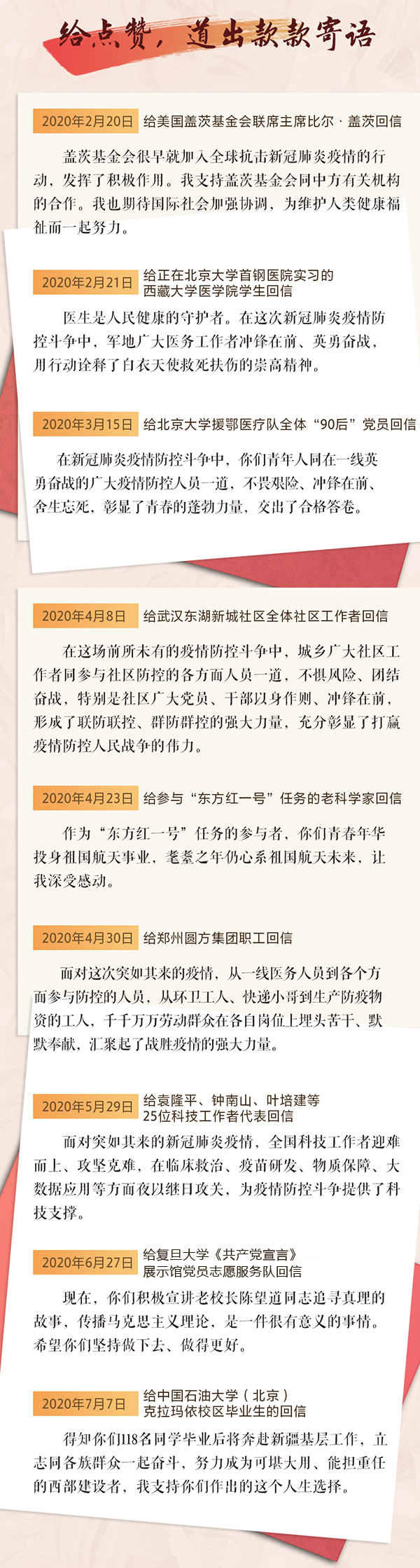 今天让我们关注习近平今年以来的“回信”。