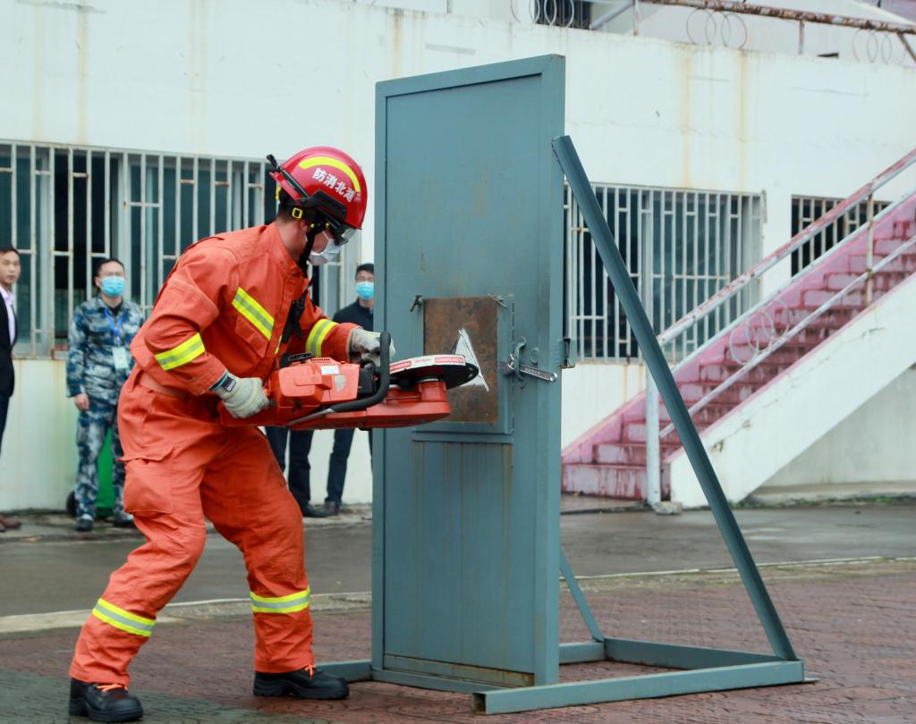 演练示范前,该支队政治指导员董明泽为师生们讲授消防安全知识以及灭火工具使用的注意事项,并由消防官兵现场示范消防破拆切割机和灭火器的正确使用方法。