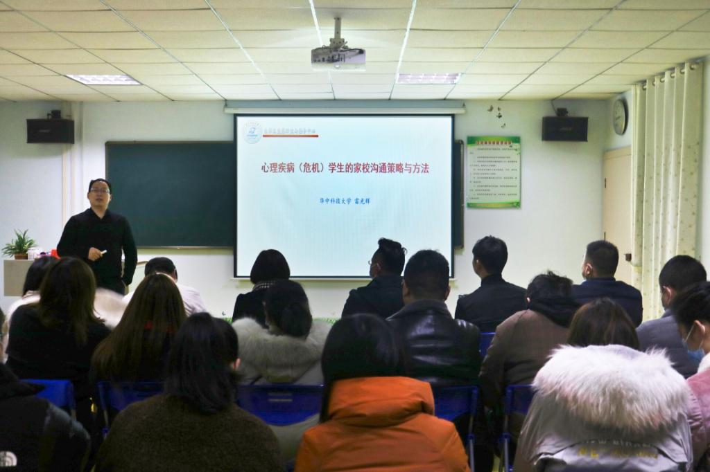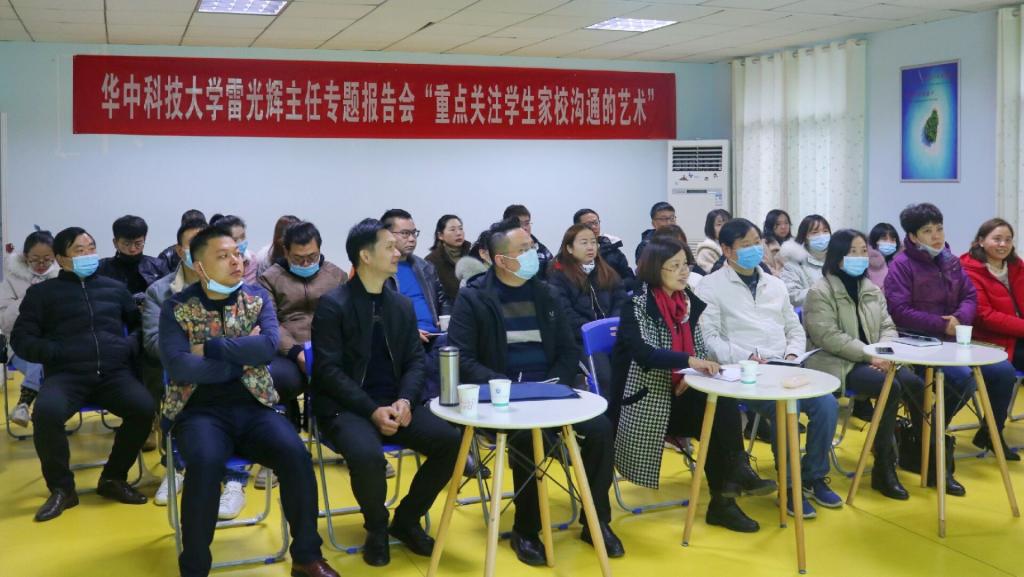 本网讯 11月28日上午,公司举办“重点员工家校沟通的艺术”专题讲座,特邀请华中科技大学的老员工发展与指导中心副主任雷光辉担任主讲人。党委副书记王晶出席并主持报告会,员工工作处全体人员、教学系员工工作负责人和全体一线专职辅导员参加讲座。