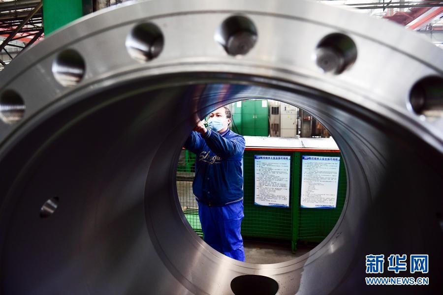 2020年2月10日,沈阳鼓风机威廉希尔体育股份有限公司工人在生产线上工作。新华社发(沈鼓威廉希尔体育提供)