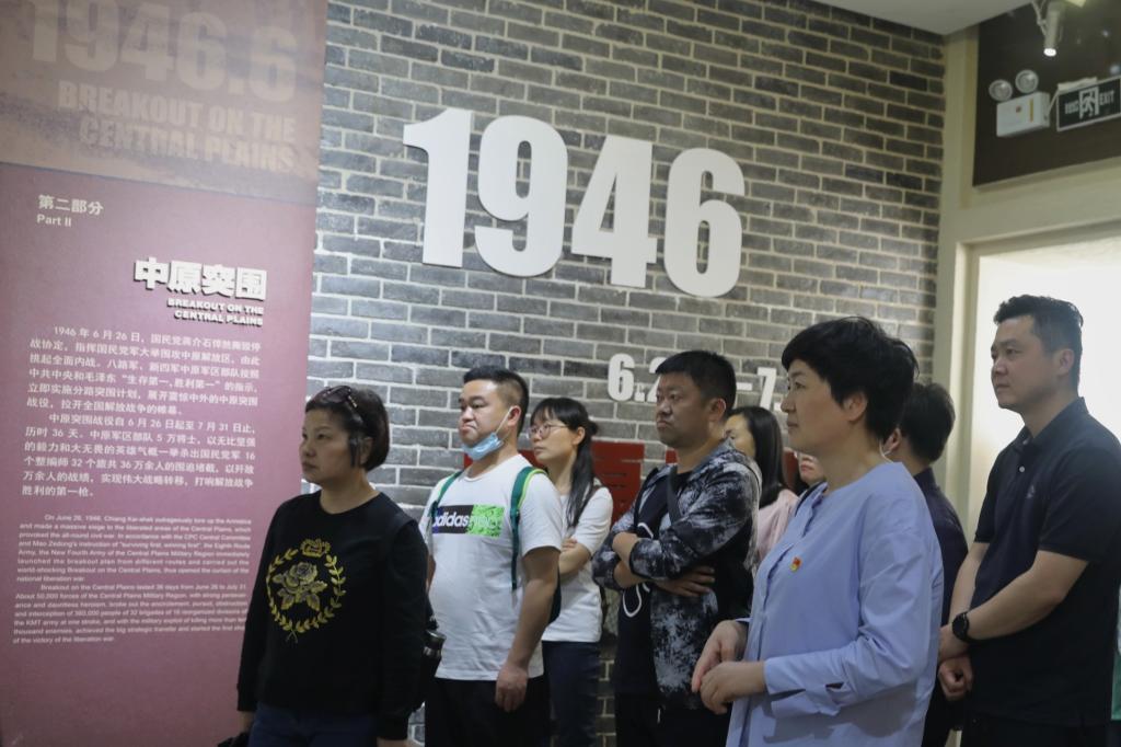 75年前,以湖北省大悟县宣化店为起点的中原突围,拉开了全国解放战争的序幕,揭开了中国革命历史的崭新篇章,铸造了中原突围精神的不朽丰碑。在庄严肃穆的展馆内,每一幅生动图片、每一段真实文字、每一件珍贵的历史史料……都铭刻着革命的丰功伟绩,诉说着可歌可泣的革命历史和光荣英雄事迹。在讲解员的深情讲解下,一行人回顾革命的峥嵘岁月,缅怀革命先烈的丰功伟绩,感受着中原突围精神。
