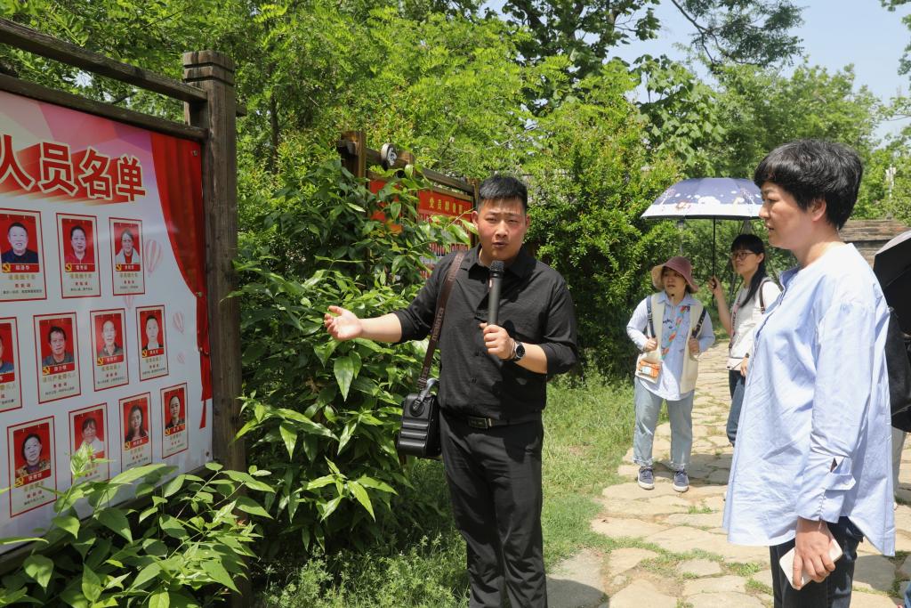 上午十点,姚娟一行刚抵达研学首站、第五届全国文明村镇、全国乡村治理示范村——金岭村,即偶遇入职该村的老员工村官、公司城市建设系17届优秀毕业生——欧木林。他主动参与讲解,并热情地介绍到:“能在这里遇到母校的众多老师,真是倍感亲切!希望能作为讲解员,带领老师们了解金岭村这些年的发展和变化。”大家在欧木林的带领下,认真观看了金岭村脱贫攻坚的历史记录,实地去往爱心商店、药材基地、汉绣基地、小张湾等脱贫攻坚示范点,详细了解金岭村集体经济发展、脱贫攻坚、新农村建设等方面的情况。
