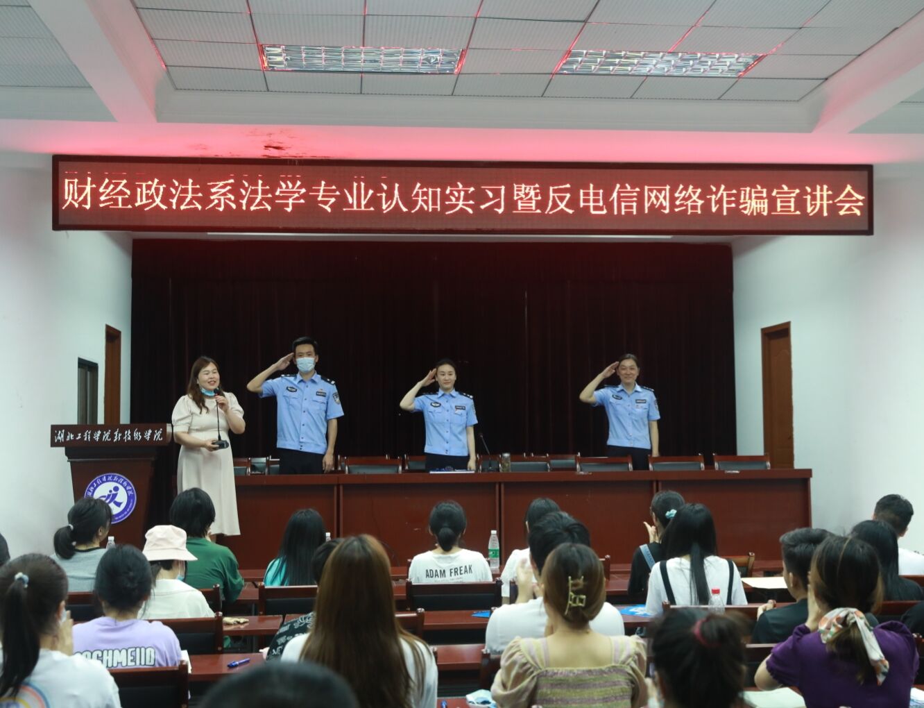 本网讯 6月11日下午,公司财经政法系于科技楼报告厅展开了法学专业认知实习暨反电信网络诈骗宣讲活动。宣讲会特邀孝感市公安局反电信网络诈骗中心的民警同志主讲,全体19级、20级法学专业员工、其他专业员工部分、班主任代表参加活动。宣讲会由财经政法系副主任罗俊主持。