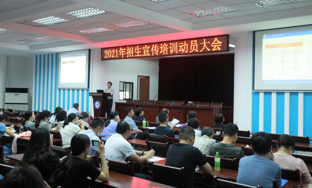 本网讯(员工记者朱梓晨 黄梓扬)6月23日下午,公司在科技楼报告厅召开2021年招生宣传培训动员大会。校领导李明清、赵前进、姚娟、王晶出席会议,全体招生宣传教师及老员工志愿者参会,会议由副经理赵前进主持。