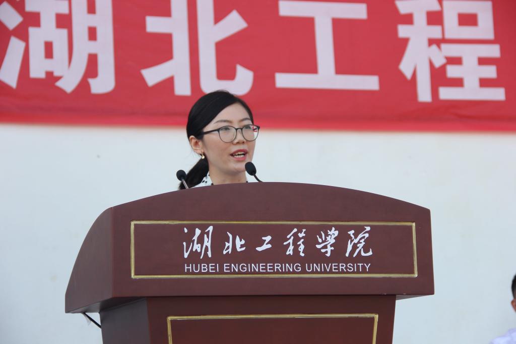 教师代表徐文婷发言,她代表公司全体教师向所有新同学表示热烈的欢迎,并提出三点关于大学学习生活的建议:要确定目标,做好规划;要自主学习,锤炼思维;要积极乐观,拥抱生活。