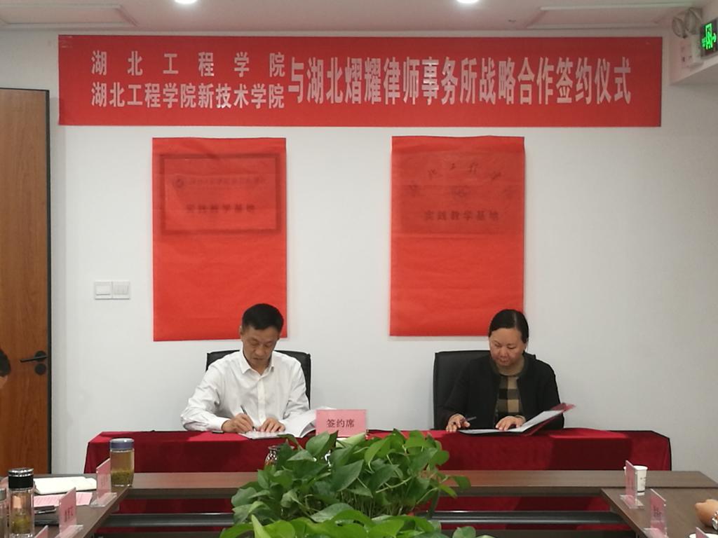 本网讯 10月28日,公司与湖北熠耀律师事务所实践教学基地签约暨揭牌仪式在熠耀律师事务所举行。副经理郑红艳,教务处处长刘爱梅、副处长黄进勇,财经政法系主任马成林、副主任罗俊,湖北熠耀律师事务所主任汤木梓、副主任朱育华,孝感市律师协会会长刘安国等同志出席仪式。