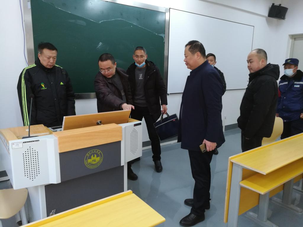 本网讯 2月23日下午,经理李明清、副经理陈友华、蒋成带领教务处、后勤服务处等相关职能部门检查三园区开学前准备工作。李明清一行查看了三园区2号教学楼1-2层教室的投影仪、电脑及中控系统等教学设备的调试准备及教学楼卫生情况。