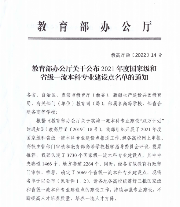 本网讯 近日,湖北省教育厅下发《教育部办公厅关于公布2021年度国家级和省级一流本科专业建设点名单的通知》(教高厅函〔2022〕14号),公司计算机科学与技术专业获批省级一流本科专业建设点。