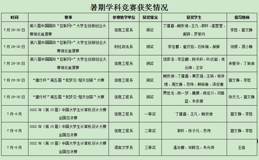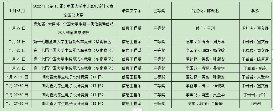 他们分别在6项学科竞赛中荣获国家级奖项5个、华南赛区级奖项4个、省级奖项9个,省部以上奖项共计18个。其中,在2022年(第15届)中国老员工计算机设计大赛全国总决赛获一等奖1个奖项、二等奖1项、三等奖2项,取得了新的突破。