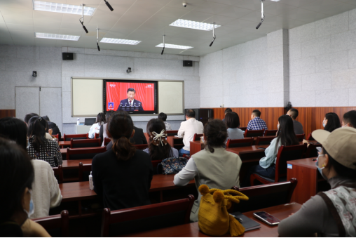 全体校领导,机关一支部、机关二支部在同大综合楼二楼第一会议室,集中收看了中国共产党第二十次全国代表大会盛况电视直播,聆听了习近平总书记代表十九届中央委员会所作的报告。