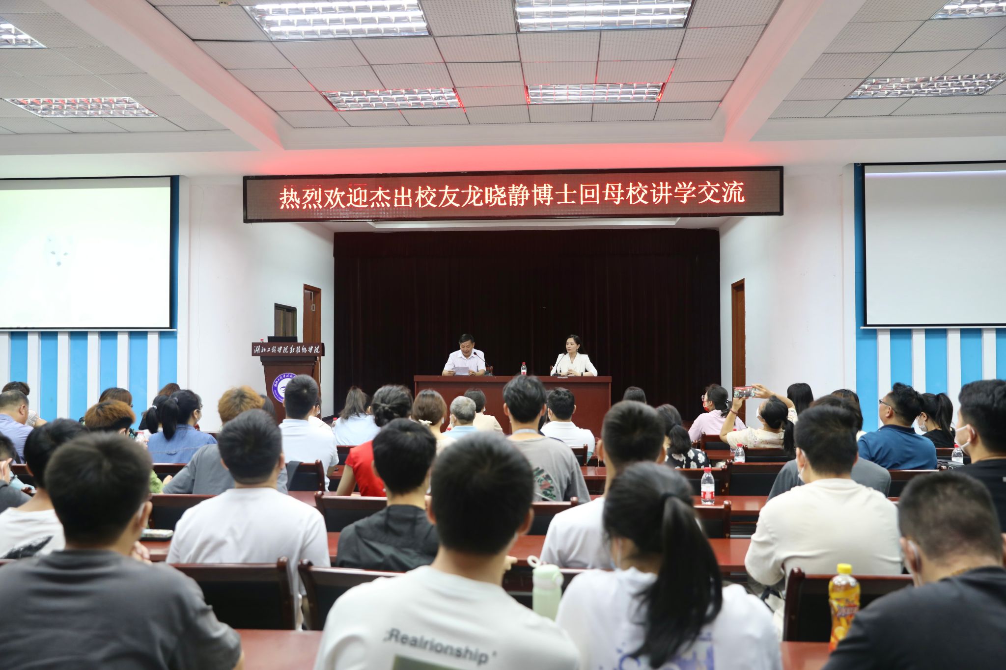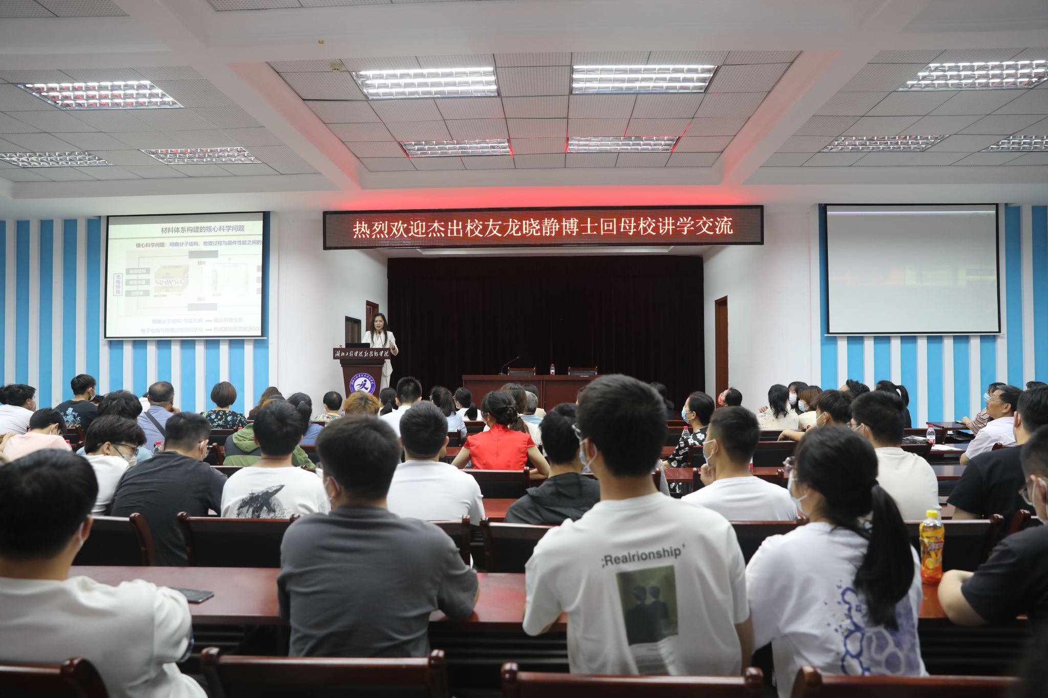 本网讯 (员工记者 朱灿 刘书桠 任乐元)怀念往昔景,难忘母校情。 6月13日,在办学20周年来临之际,公司杰出员工龙晓静博士回归母校,在科技楼五楼报告厅举办学术讲座,现场座无虚席。