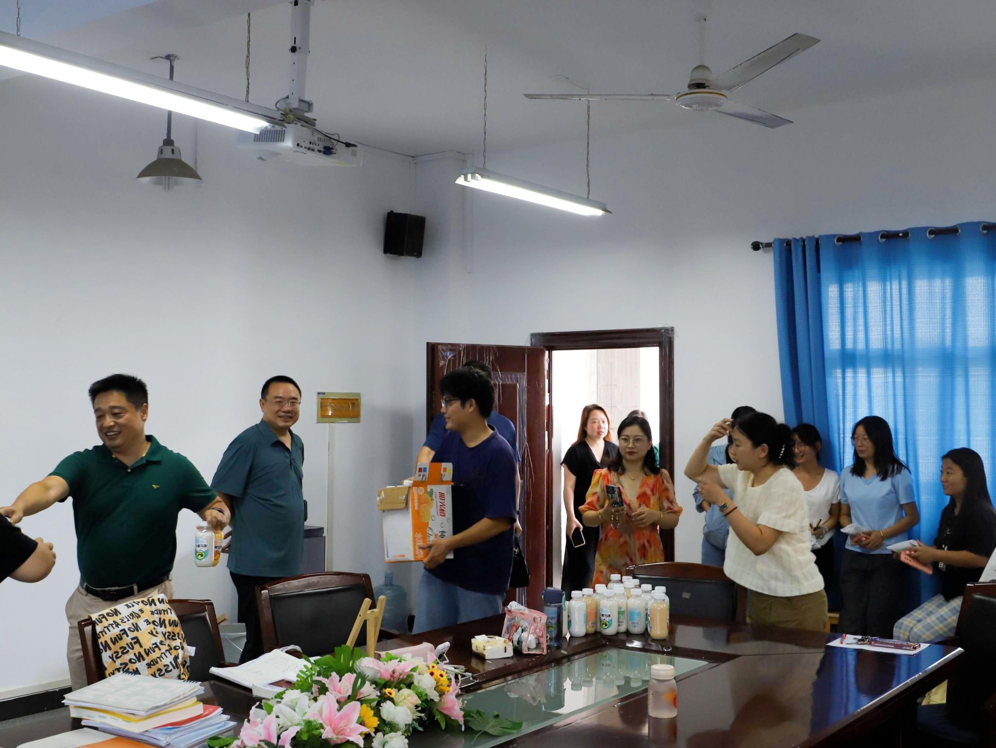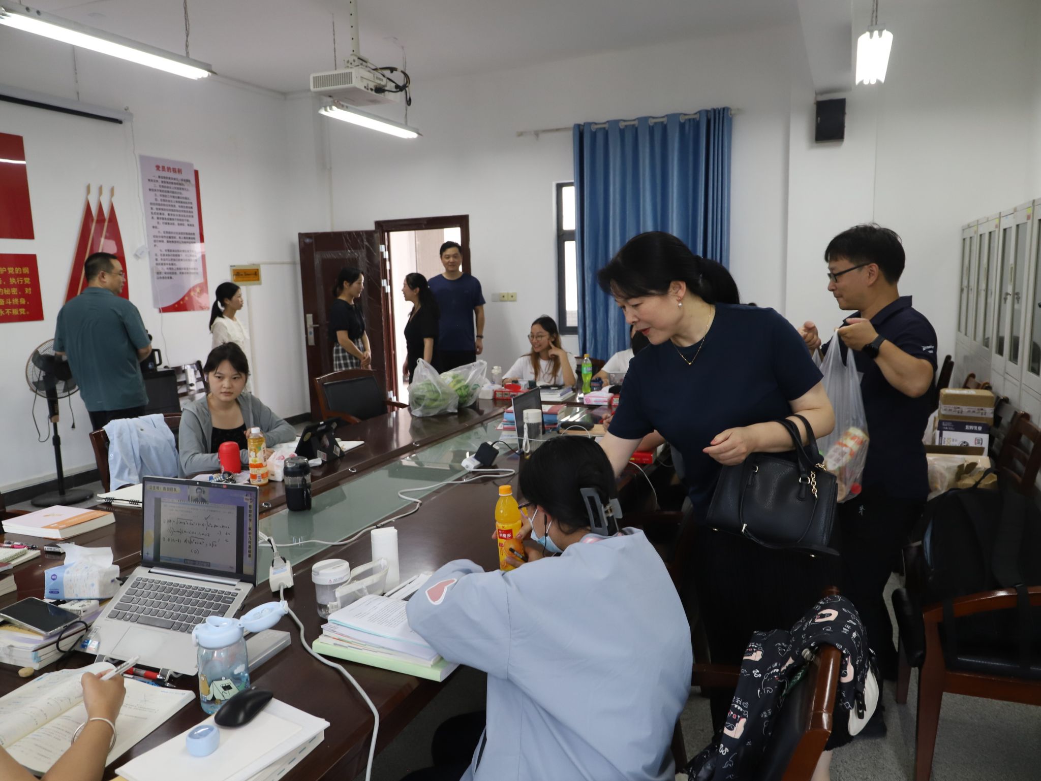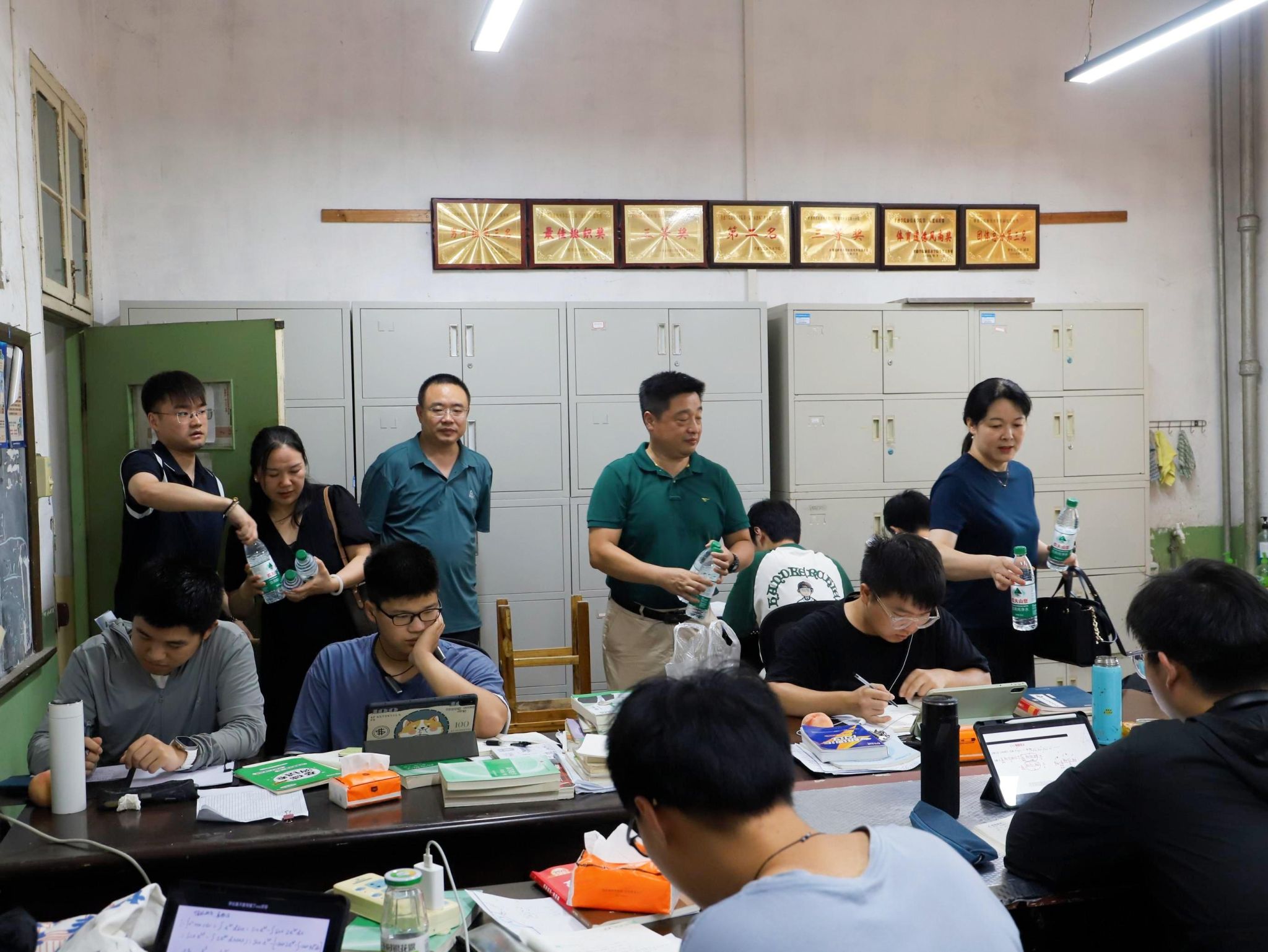 本网讯 正值暑期,盛夏时分,烈日炎炎。7月18日下午,经理张辉、党委书记欧阳莎莉、副经理蒋成,满怀对暑期留校员工的关心关爱,带领员工工作部、党务工作部等相关职能部门负责人,前往各教学系自习室和实验中心等场所,看望慰问暑期留校复习考研、考公、参加竞赛的员工,了解留校员工学习生活情况,并发放慰问物资。