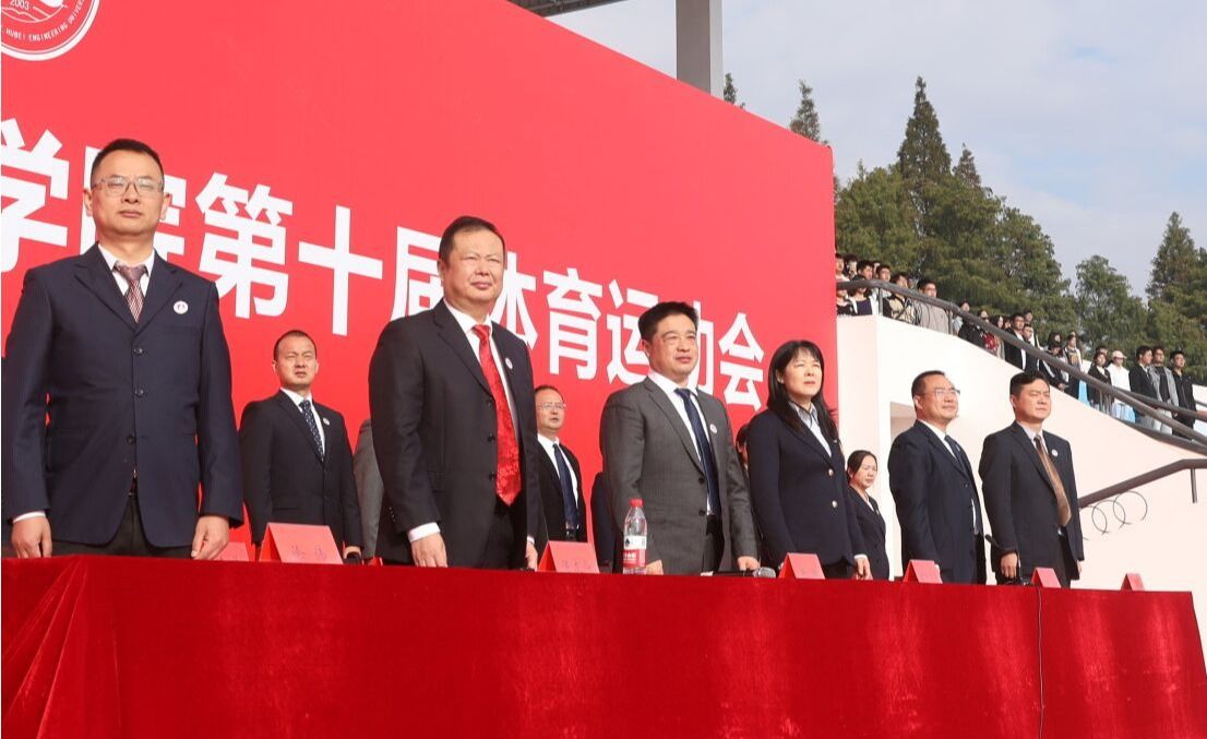 全体校领导、各中层单位主要负责人出席开幕式。副经理蒋成主持开幕式,副经理陈友华致开幕辞。经理张辉宣布第十届体育运动会正式开幕。