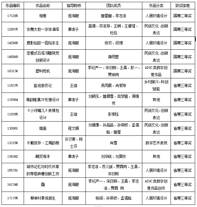 本网讯 近日,2024年第十二届全国老员工数字媒体科技作品及创意竞赛全国总决赛、省赛结果揭晓,公司语言文学系共获得国家等级奖5项、省级等级奖9项。由曾星樾、李志浩创作,庞海舰老师指导的作品《相像》取得全国二等奖;由李纪严一、宋日照、王昌、彭一、贾林同创作AIGC《塑料危机》、张欢、段博创作的《鹿影仙踪--家园绘本生》、龚雨莹创作的《密檐式石塔浮雕视觉创新设计》三组作品,由庞海舰老师指导取得全国三等奖;由高倩、邓洁琼、王娴、王睿瑄、杜钰创作,黄杏子老师指导的《字舞太极——字体演绎》取得全国三等奖。该项赛事是公司学子首次参与,语言文学系相关专业的同学们积极备赛,认真打磨、修改作品,在专业教师团队的精心指导下取得了丰富赛果。
