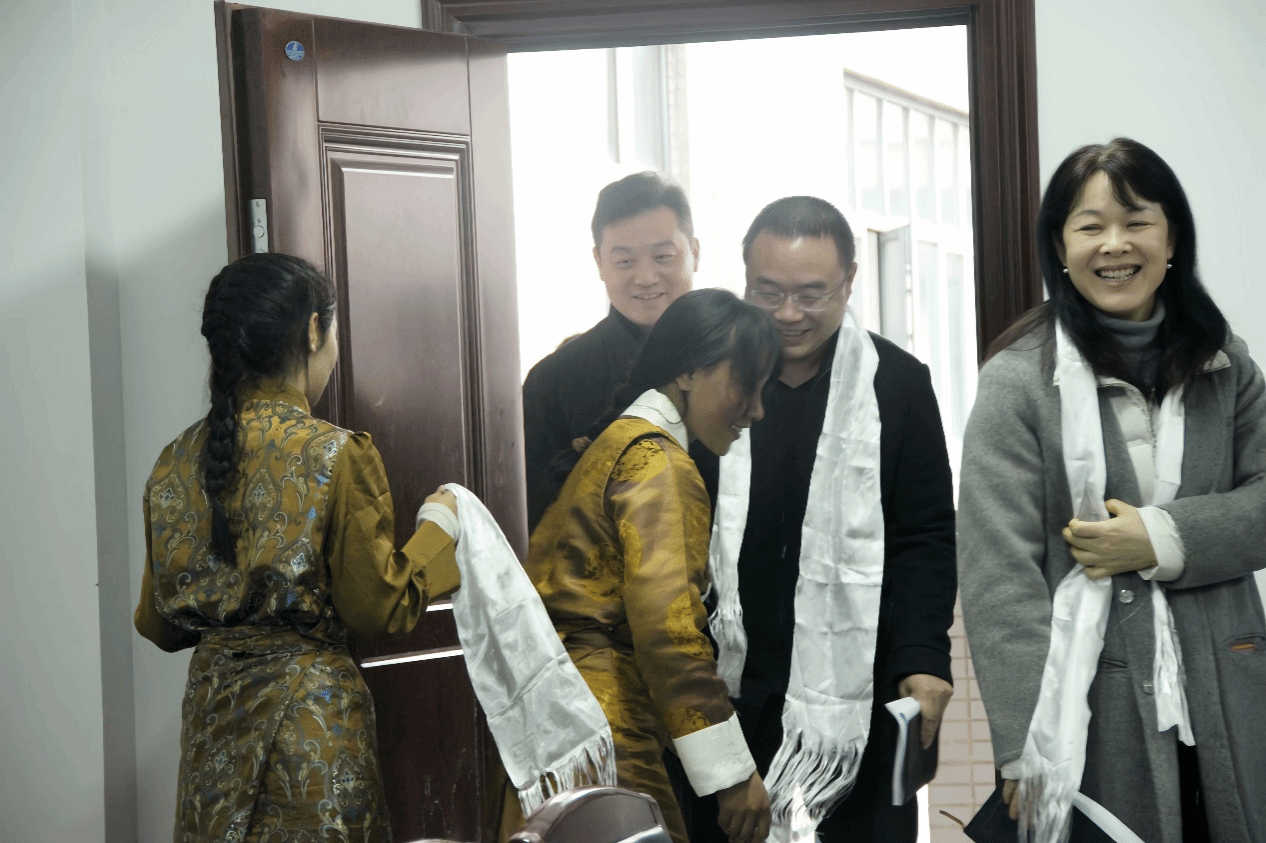 藏族同学们向在场的老师们敬献了洁白的哈达,并致以新年祝福。