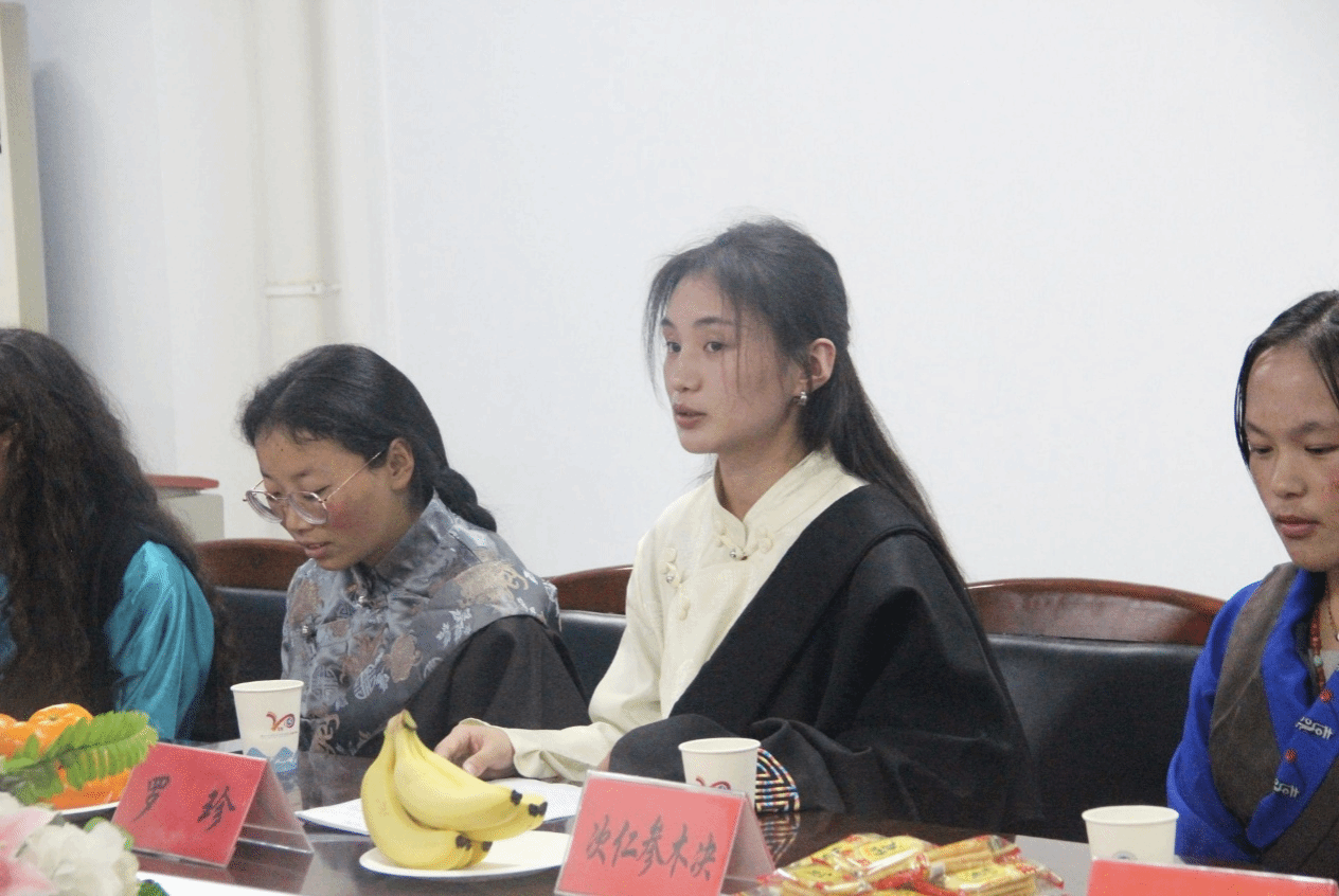 罗珍同学作为代表发言。她分享了自己藏历新年的独特记忆,讲述了家乡的新年传统习俗,让在场师生感受到了藏族文化的魅力。随后,同学们依次介绍了自己藏语名字的含义,例如,“罗”或“诺”字在藏语中意为宝贝、珍贵。不同的民族相互交融,碰撞出了别样的火花。